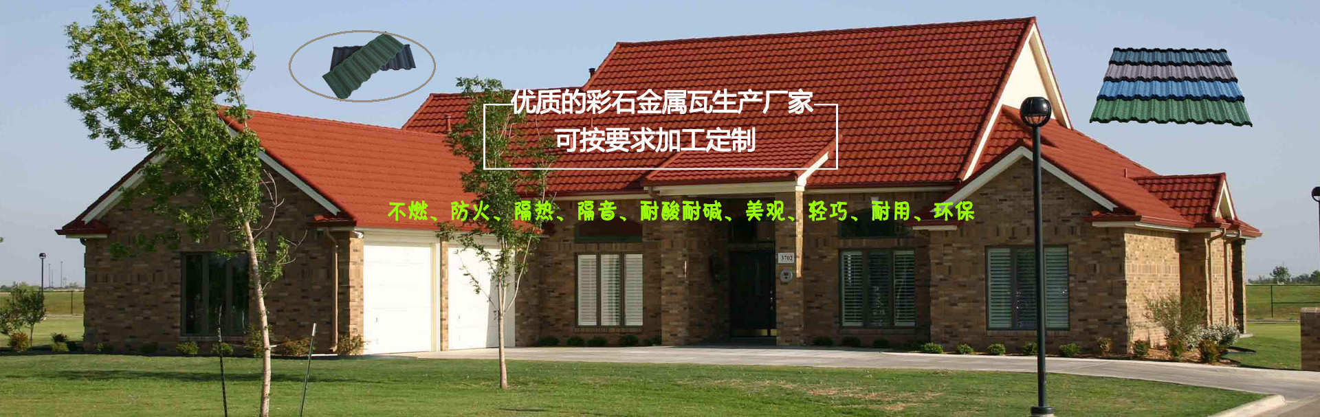 我們是一家彩石金屬瓦設備、設計、制造、銷售、安裝及服務于一體的公司 以過硬的產品質量,優(yōu)惠的產品價格,令人滿意的銷售服務,贏得您的支持與信賴。 彩石金屬瓦以防腐性能優(yōu)異的鍍鋁鋅鋼板為基板,以耐候性強的丙烯酸樹脂為黏合劑,以彩色天然沙礫為面層的新型屋面材料。